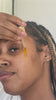 Woman applying Algae Retinol Face Oil to her face with a blue sky background